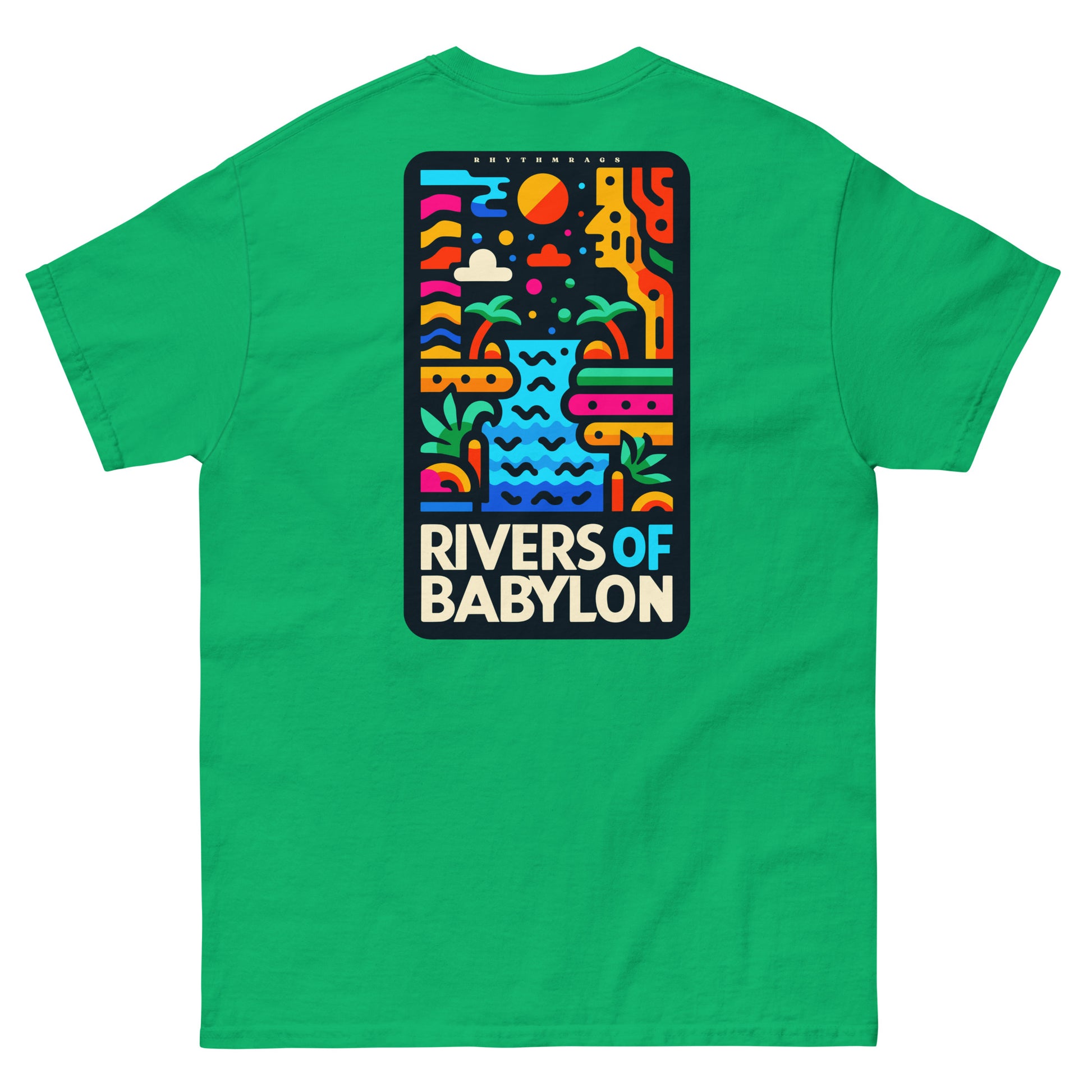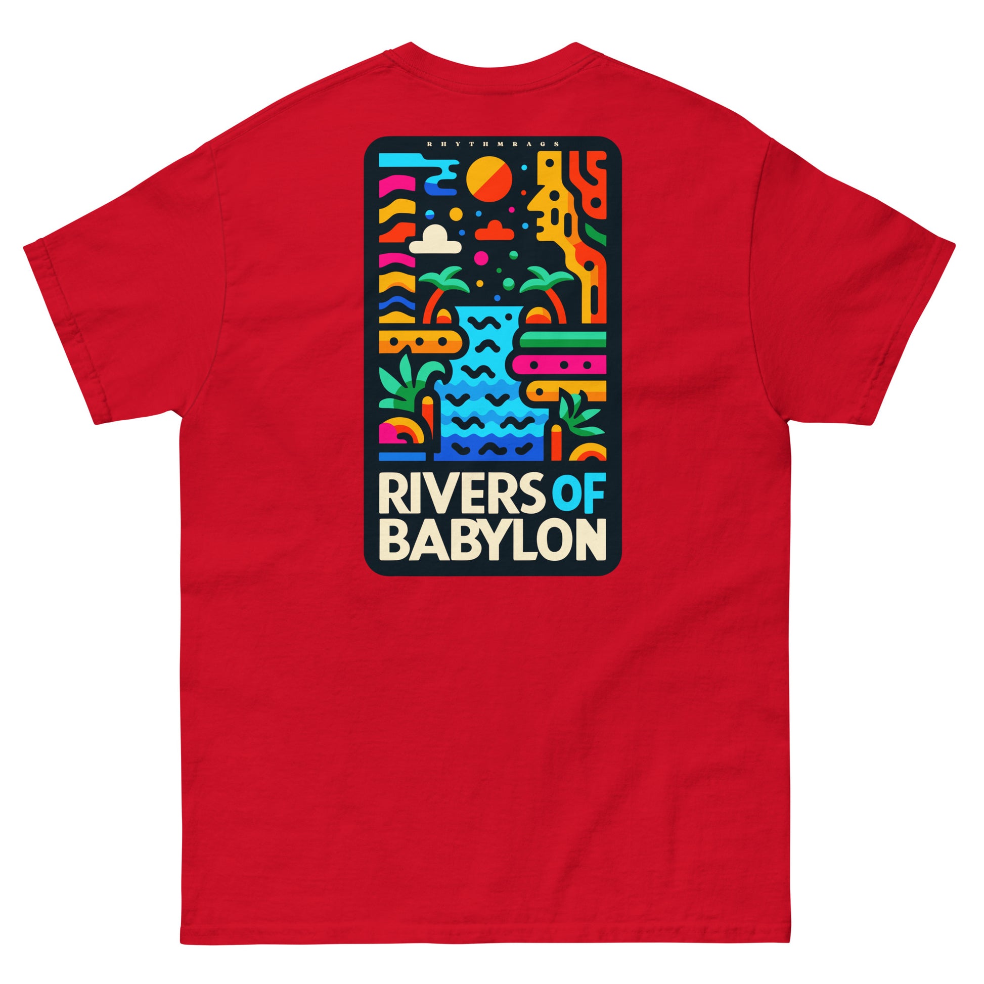 Dive into reggae nostalgia with our Rivers of Babylon tee, a soulful tribute to The Melodians. This shirt, adorned with vibrant Rasta colors and an iconic graphic, pays homage to the Babylonian waters of reggae culture. Embrace the melody, celebrate the roots, and wear a piece of Jamaican history with pride.